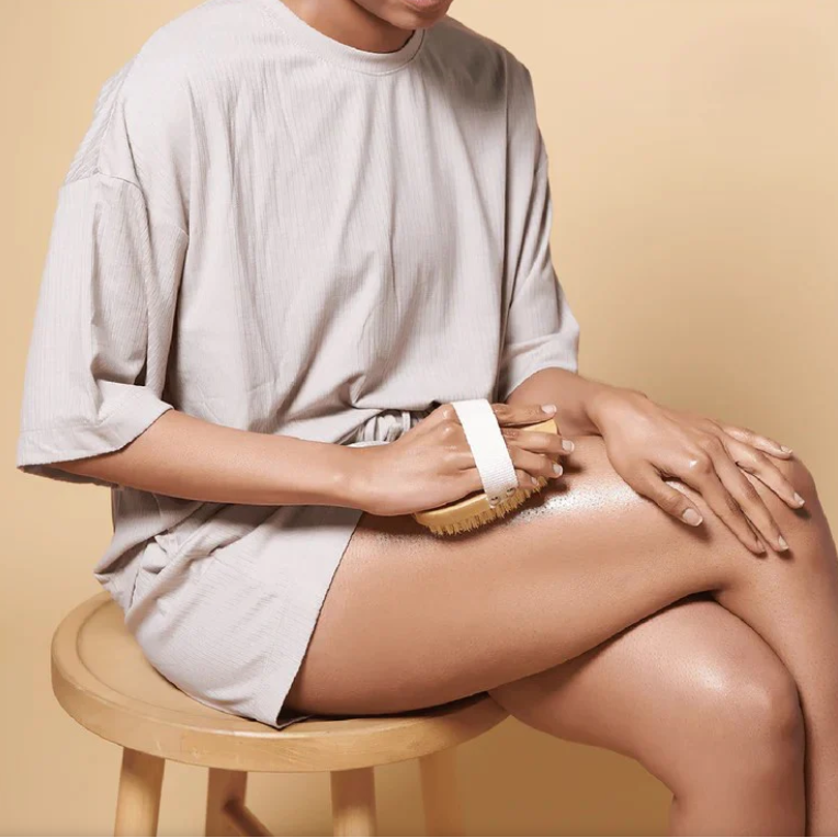 Step 1: Pump a few drops of Serica's Anti-Cellulite Massage Oil onto palms and fingers. You may also use our Brushes Tools to promote circulation